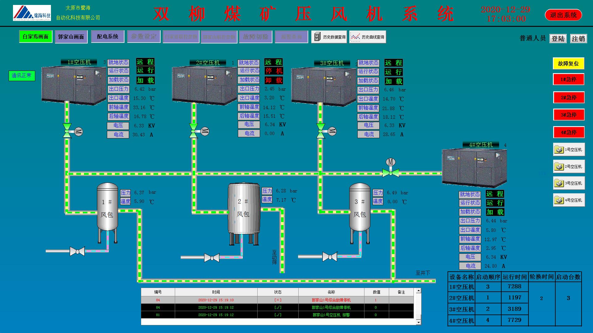 實現壓風機方各重要設備運行狀態實時監測、故障報警與聯動控制